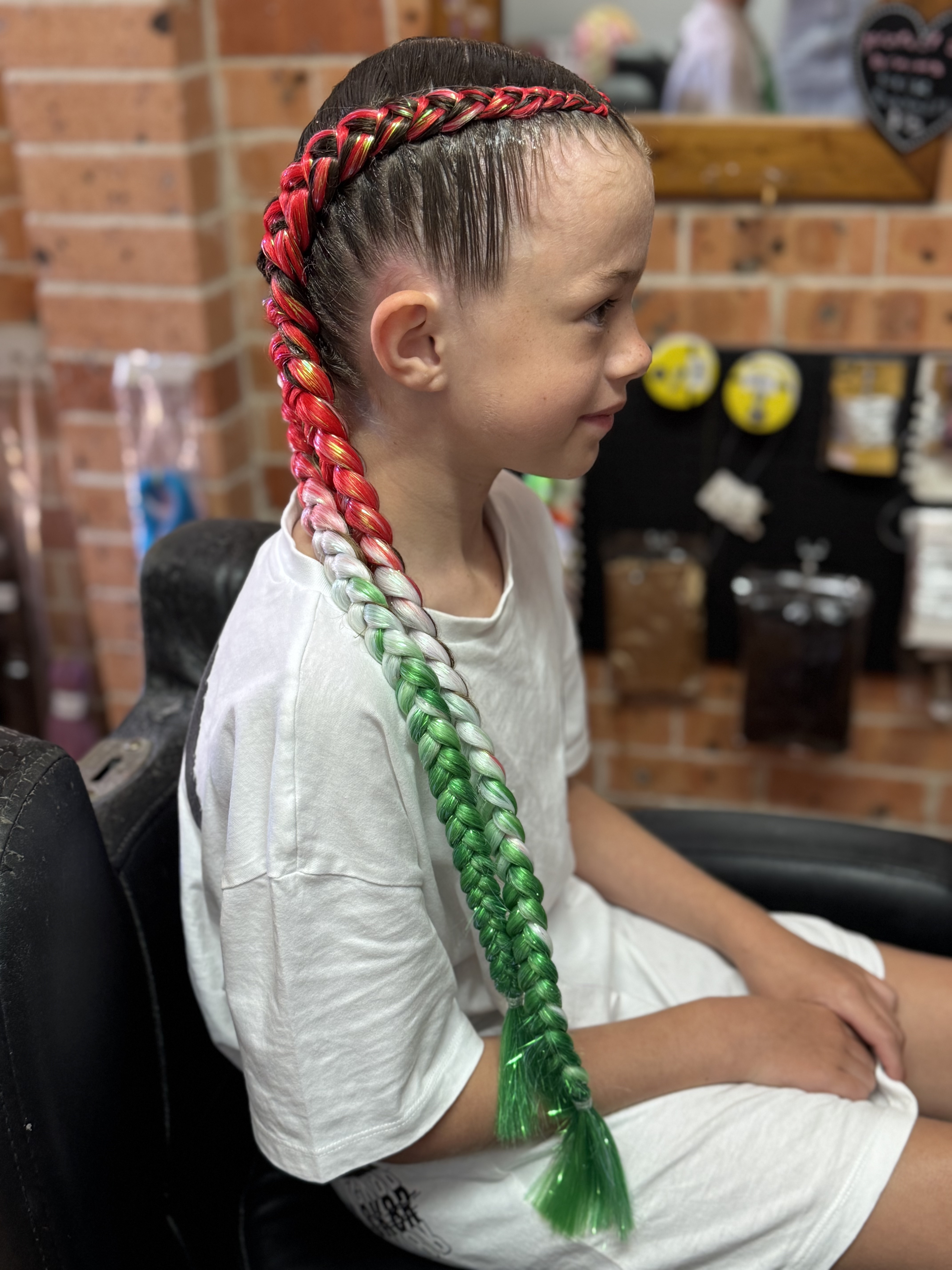 Christmas colours red, white and green tinsel silky extensions – 24 inch